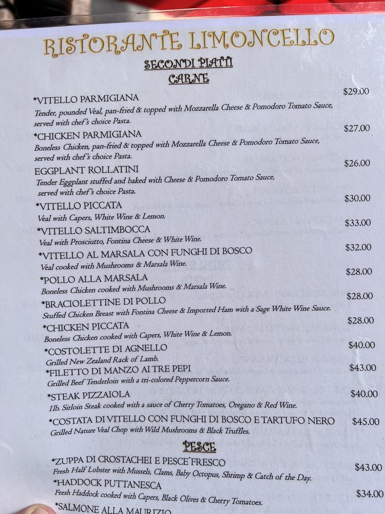 Limoncello Ristorante is a charming Italian restaurant located at 190 North St in Boston, MA. This cozy spot offers a range of authentic Italian dishes in a warm and inviting atmosphere. With a menu featuring classics like shrimp w/ vodka sauce, lobster ravioli, and chicken parmigiana, guests are sure to find a favorite. The attentive staff is happy to provide recommendations and ensure a pleasant dining experience. The restaurant's outdoor seating area and cozy interior make it a perfect choice for a romantic date night or a casual gathering with friends. Don't miss out on their delicious antipasti options like Involtini Malanzane and Baked Clams Oreganata. Limoncello Ristorante is a must-visit for anyone craving traditional Italian cuisine in the North End. Highly recommended for its top-notch food, service, and atmosphere.